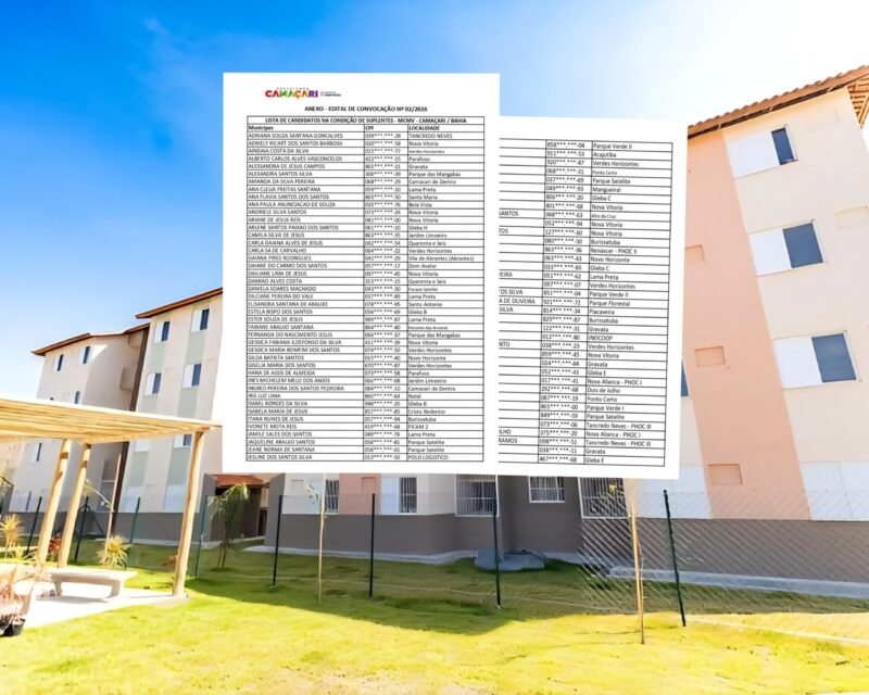 A Prefeitura de Camaçari, por meio da Secretaria Municipal da Habitação (Sehab), publicou um edital de convocação para candidatos do programa Minha Casa, Minha Vida (PMCMV 2024/2026) no município. A chamada é destinada à etapa de verificação documental de beneficiários classificados como suplentes.