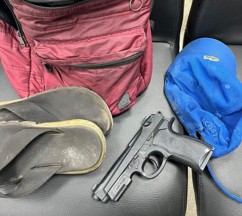 Além do simulacro de arma de fogo, uma mochila também foi apreendida. Um segundo indivíduo que acompanhava o suspeito foi igualmente conduzido para esclarecimentos.
