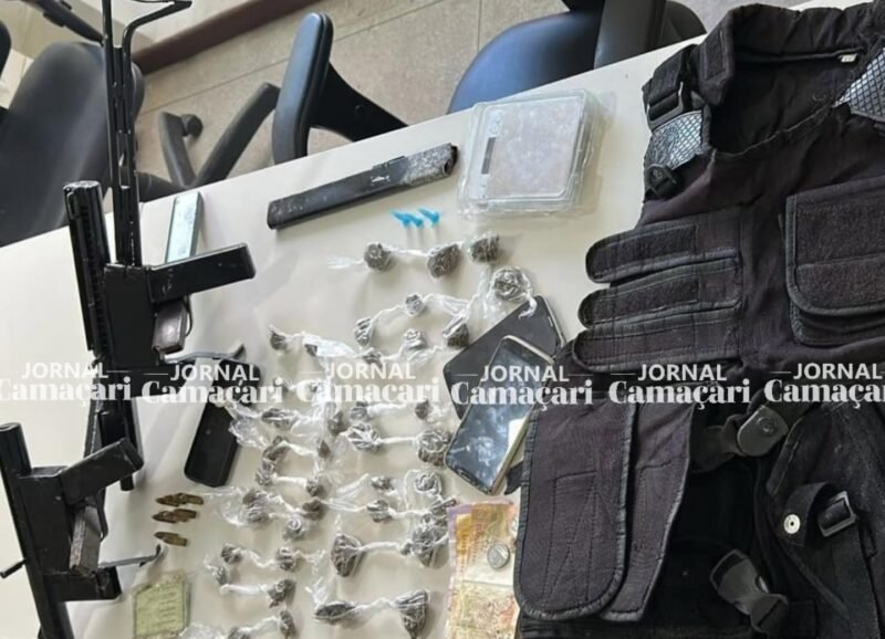 Com eles, foram apreendidos 02 metralhadoras caseiras calibre 9mm, 10 munições calibre 9mm, 40 porções de maconha, 03 pinos de cocaína. O material foi apresentado na 18ª Delegacia Territorial (DT) de Camaçari.
