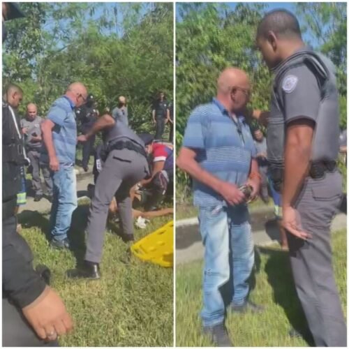 A Polícia Civil confirmou que o homem que aparece nas imagens é o pai do rapaz baleado e detido. No vídeo, que repercutiu nas redes sociais, o pai é contido por um Policial Militar, para que não avance sobre o rapaz que está recebendo os primeiros socorros após ter sido baleado.