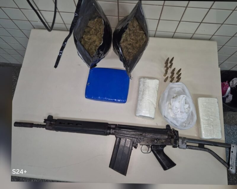 A Polícia Rodoviária apreendeu um fuzil, munições e mais de três quilos de drogas, na tarde de quinta-feira (21), durante ações da Operação Força Total, na BA-530 (Cetrel), em Camaçari.