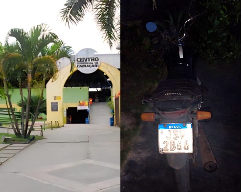 Na última segunda-feira (11), uma motocicleta com restrição de roubo/furto foi localizada abandonada no estacionamento do Centro Comercial de Camaçari.