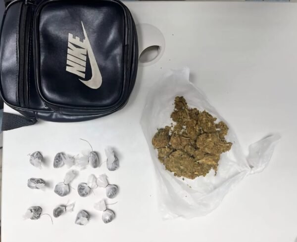 Com o suspeito, os policiais encontraram uma bolsa transversal preta contendo material semelhante à maconha. Questionado sobre a origem e o destino da substância, o homem confessou que pretendia comercializar o entorpecente durante a noite naquela região.