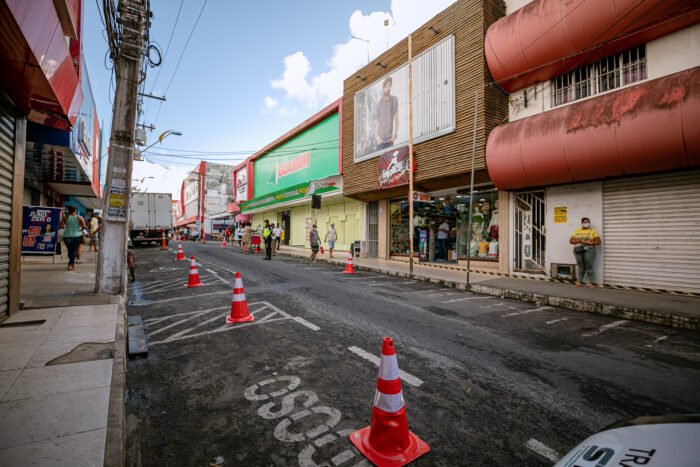 Toda extensão das vias Getúlio Vargas e Adelina de Sá, no centro de Camaçari, estão proibidas de estacionar a partir de uma campanha de conscientização da população no combate à Covid-19, a fim de que as ruas fiquem mais espaçosas e o acesso ao comércio ofereça mais segurança aos clientes.